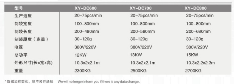 該機適用原材料為無紡布,能加工各種不同規(guī)格,不同形狀的無紡布袋,平口袋,手提平口袋,背心袋,插底袋及立體袋等,